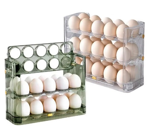 +Este organizador tiene capacidad para almacenar hasta 30 huevos, aprovechando el espacio vertical en el refrigerador de manera eficiente.